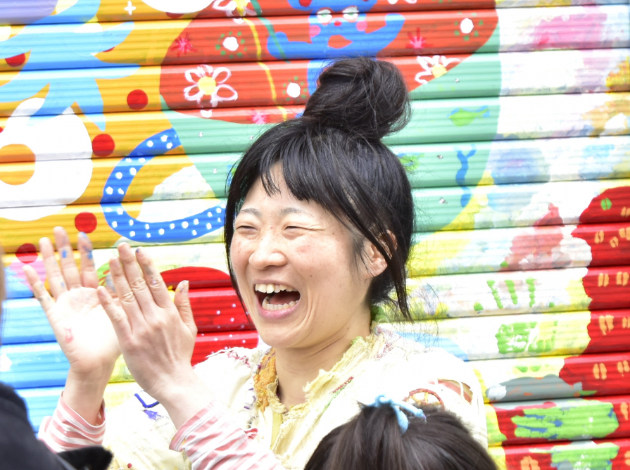 支援センター内の多文化交流ひろばの壁画作者、ささきさとみさんを講師に迎え、前半は壁画の制作秘話を伺い、後半は感性を広げて、伝統工芸「越谷千鳥うちわ」の絵付けに挑戦!