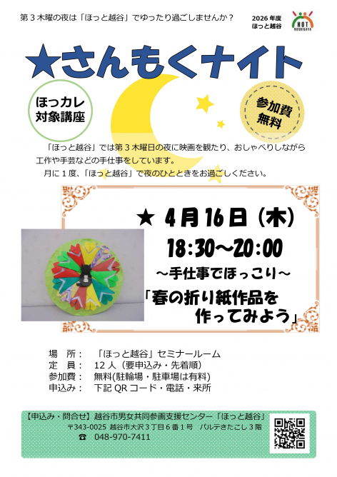 手仕事でほっこり 「春の折り紙作品を作ってみよう」